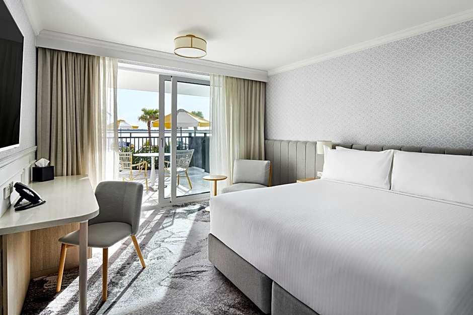 After a day exploring the coastal town, unwind at an outdoor pool with a view. This adults-only oasis invites sun-drenched relaxation and sea breezes, whether lingering by the edge or taking a refreshing dip. Free beach umbrellas and loungers line the pool area, while the sun deck, terrace, and balconies offer plenty of spots to soak in the seaside atmosphere. Easy access is ensured with free on-site parking and an elevator ride to the lobby.
